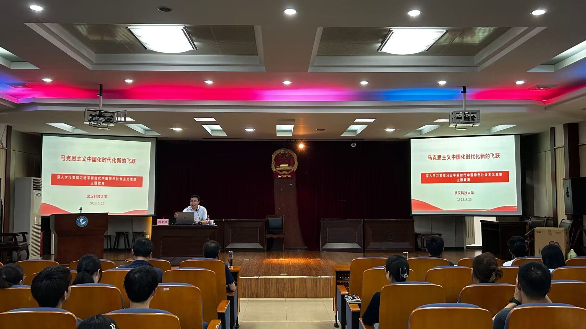 武科大网讯(通讯员胡诗绮)5月25日下午,法学与经济公司在黄家湖校区教四楼模拟法庭召开学习贯彻习近平新时代中国特色社会主义思想主题教育辅导报告会。报告会由马克思主义公司副经理、教授刘文波主讲,公司全体领导班子成员、系部主任、教工党支部书记、辅导员和全体员工党员参会,会议由公司张继才教授主持。