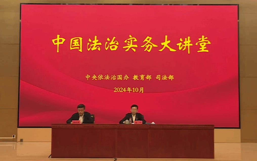 为深入学习贯彻习近平法治思想,贯彻落实党的二十大精神和二十届三中全会精神,贯彻落实全国教育大会精神,完善以实践为导向的法公司校教育培养机制,将生动的中国法治实践转化为高质量的中国法学金课,提升法学人才自主培养质量,教育部高等教育司于2024年10月17日(星期四)上午举办中国法治实务大讲堂启动仪式暨第一讲。304永利集团公司304永利集团在公司模拟法庭开设分会场,由法律系王群仿老师主持分会场,304永利集团全体老师和法学专业2023级本科生参加讲座。