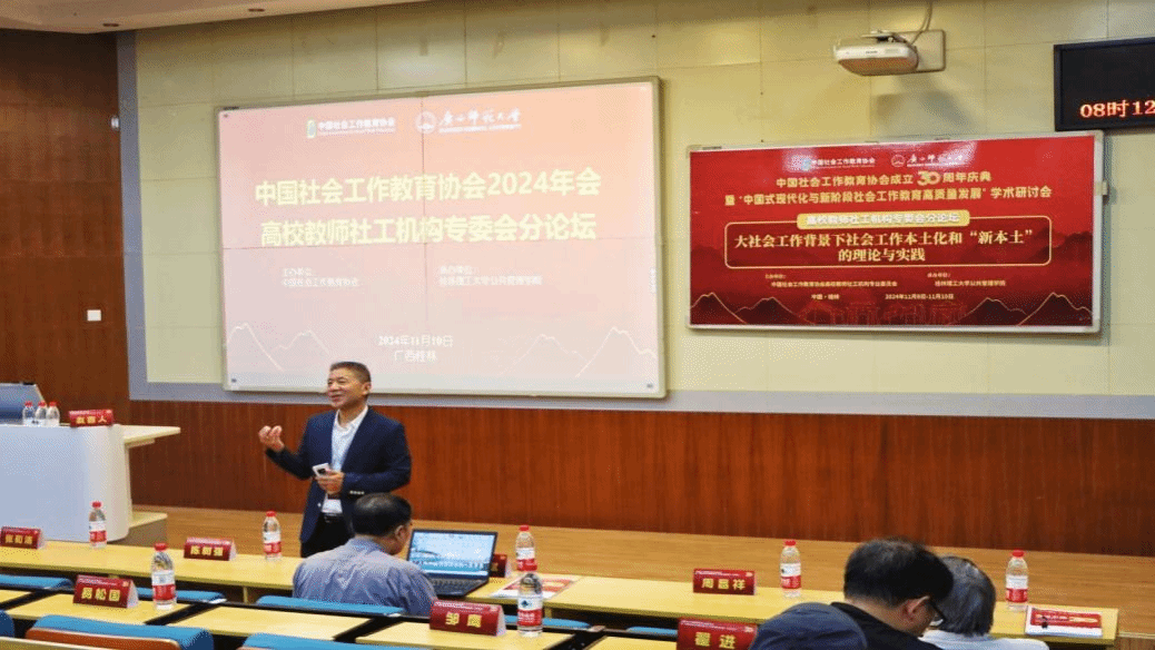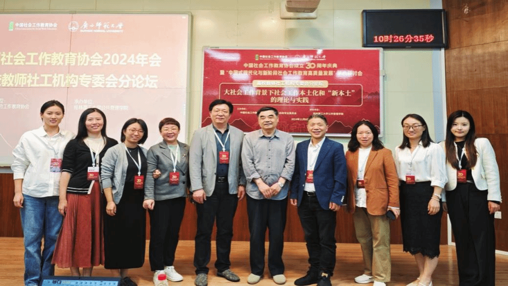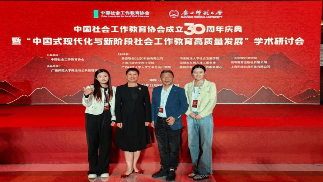 武科大网讯(通讯员 王一杰 刘田林)11月8日至10日,中国社会工作教育协会成立30周年纪念暨“中国式现代化与新阶段社会工作教育高质量发展”学术研讨会在广西桂林隆重召开。本次会议由中国社会工作教育协会主办、广西师范大学政治与公共管理公司承办,美亚联创(北京)科技有限公司提供大会直播技术支持。来自全国社会工作专业院校和行业领域的专家学者齐聚一堂,共同探讨社会工作教育的新趋势、新挑战和新机遇。研讨会内容丰富、议题广泛,为与会者提供了一个难得的交流机会和学习平台。