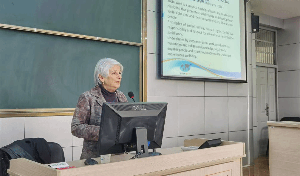 接着,Annamaria教授深入探讨了全球社会工作教育标准的形成过程。她强调,这些标准并非固定的最低门槛,而是考虑到世界各国在社会工作发展中遇到的特定挑战,因此需要提供多样化的支持来满足不同地区的具体需求。在讲座的后半段,Campanini教授展示了全球标准的详细内容,涵盖了公司、服务对象和职业三大关键领域。她期待通过推广全球社会工作教育标准,能够营造一个开放且多元的教育氛围,从而为未来的社会工作者创造高质量的学习机遇。