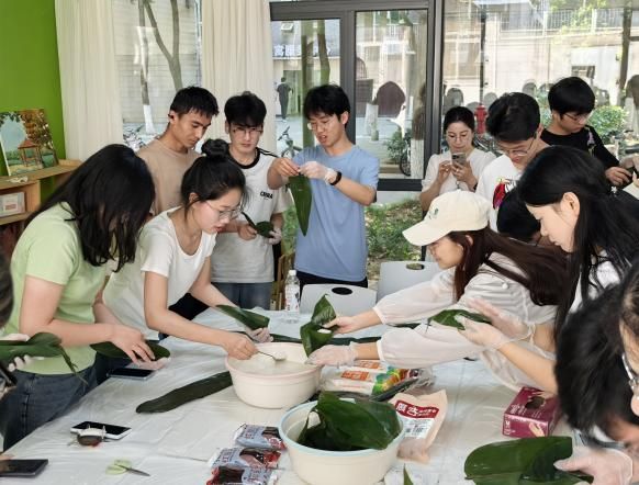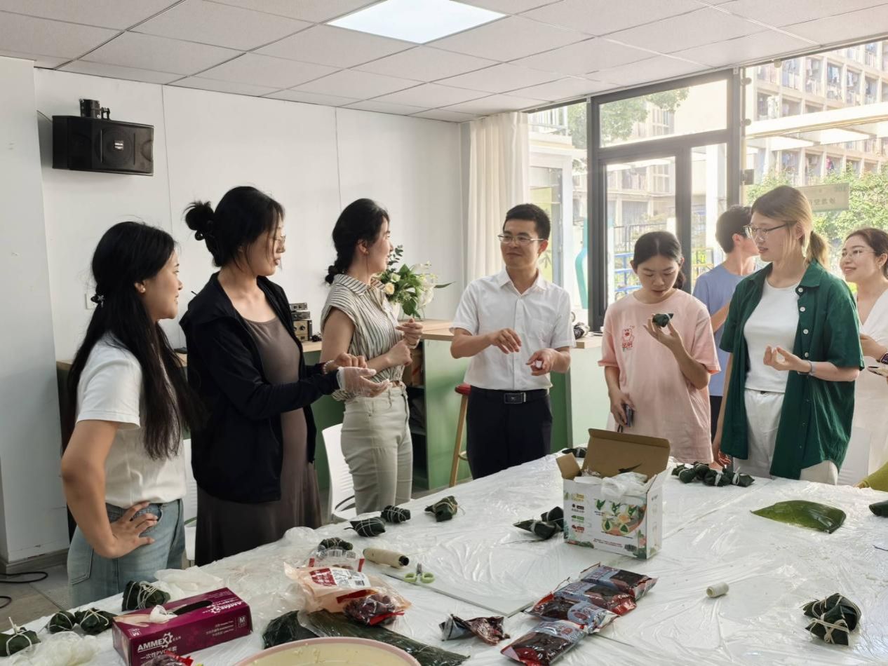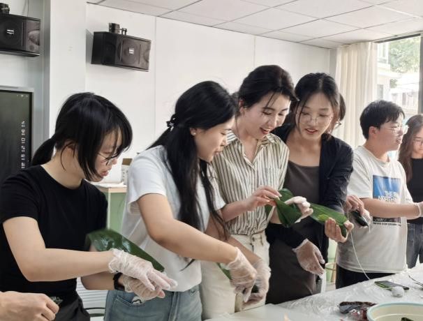 活动当天,师生们早早来到“一站式”员工社区,热火朝天地布置活动场地,粽叶、糯米、红枣、豆沙等食材摆放在长桌上,空气中弥漫着淡淡的清香,让人不由期待起即将开始的包粽子体验。