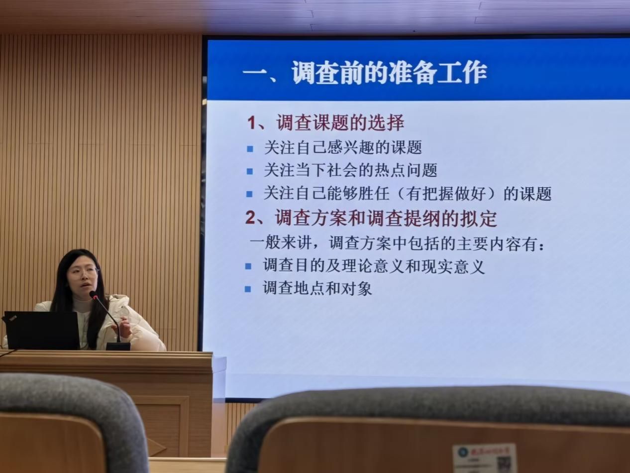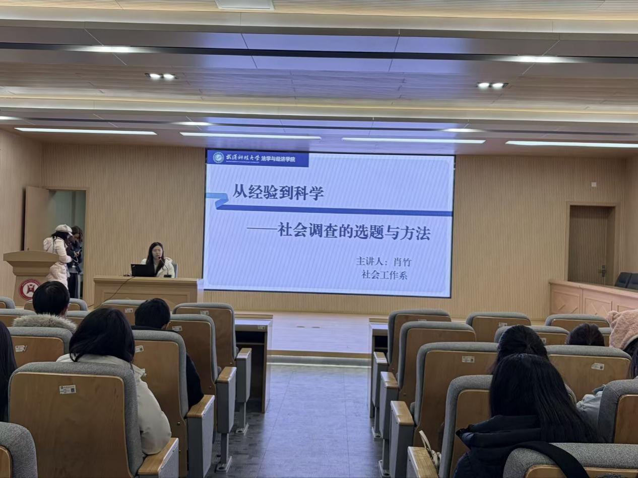 (通讯员魏熙杰 王豪毅)为丰富员工关于社会调查的认知,增强员工调查研究能力,1月19日上午,公司在教四楼模拟法庭举办小学期系列活动之“从经验到科学——社会调查的选题与方法”的专题讲座,邀请社会工作系系主任肖竹老师担任主讲,2024级、2025级法学与社会工作专业全体员工参与本次讲座。