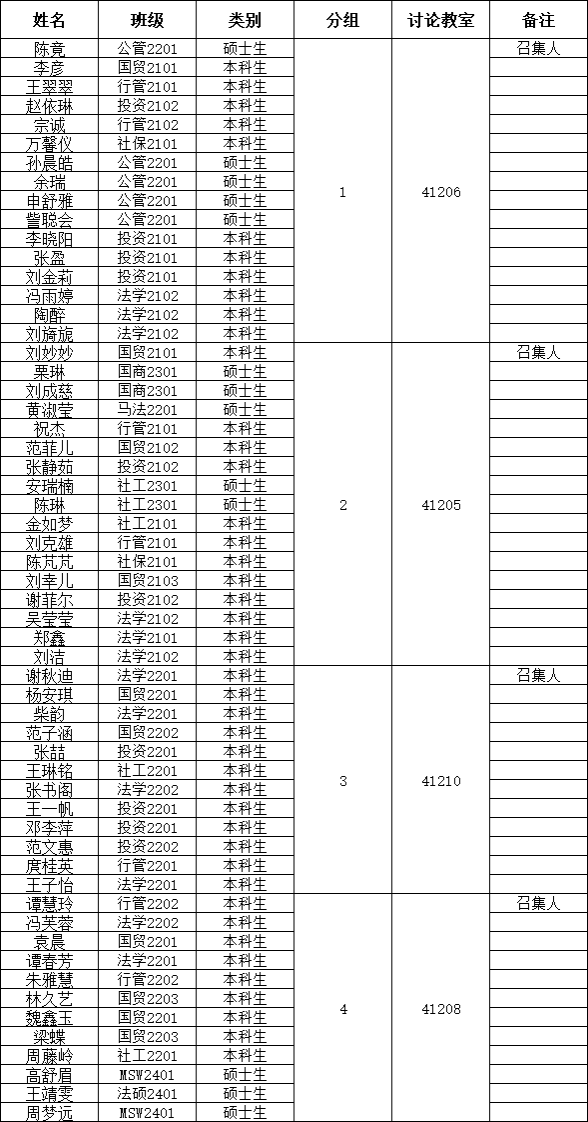 七、小组讨论分组安排