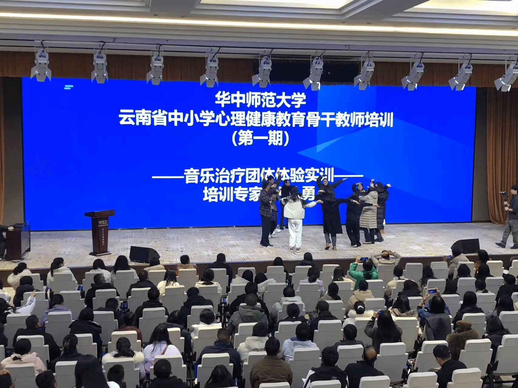 武科大网讯(通讯员 宁雯雯)3月3日上午,来自云南各地的300名中小学心理教育骨干教师,在华中师范大学接受心理健康教育技能培训。公司社会工作专业音乐治疗方向硕士研究生郑炜慧、周晓颖、邓倩倩应邀参加给学员做音乐团体治疗实训工作。